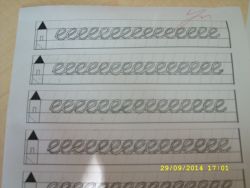 ARDINDAN BİRBİRİNE BİTİŞİK, BAĞLI 3 KÜÇÜK " e " SESİNİ YAZMAYI GÖRDÜK