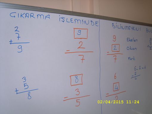 SINIF ÇALIŞMALARIMIZ... ![]() İKİ AYRI İŞLEM TARZINDA VERDİK, BİLİNMEYEN DEĞERİ BULMAYI. İLKİNDE ÜSTTEKİ DEĞER ( EKSİLEN ) BİLİNMİYORDU. ........... ( Eksilen ) 3 ( Çıkan ) _ __________ 6 ( Kalan / Fark ) Böyle bir durumda fark ile çıkanın toplamının bilinmeyen değer olan eksileni vereceğini öğretiik. İkinci işlemde ise verilmeyenin; ikinci, alttaki değer ( Çıkan ) olduğu durumlarda; üstteki değerden ( eksilenden farkı çokararak verilmeyen değeri bulabileceğimizi öğrettik. 9 .......... _ __________ 6 Bunu yazı tahtasında bir - kaç örnekle pekiştirdikten sonra bir sınıf çalışması yaptık. Kafalarda oturmayan kısımları, bu çalışmayı yansı üzerinde bir kez de birlikte yaparak giderdik. 4. ders saati için ise sadece bu tür işlemlerden ibaret olan bir başka sınıf çalışması planladık. ![]() ![]() ![]() ![]() ![]() |