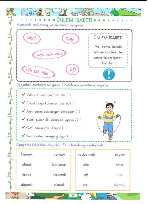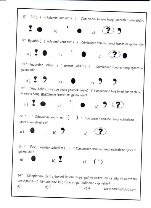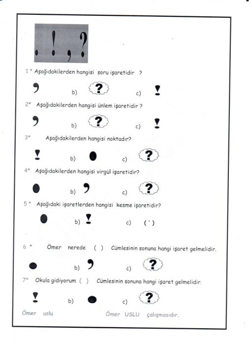ÖĞRENDİĞİMİZ NOKTALAMA İŞARETLERİNİN DAHA DA OTURMASINA YÖNELİK OLARAK PLANLANAN İKİ ADET ÇALIŞMA KAĞIDIMIZ BULUNMAKTA.