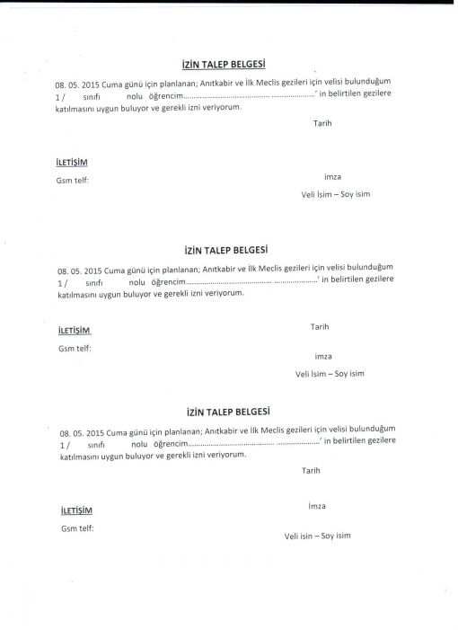 ANITKABİR VE İLK MECLİS GEZİMİZ İÇİN İZİN DİLEKÇESİ ÖRNEĞİ...