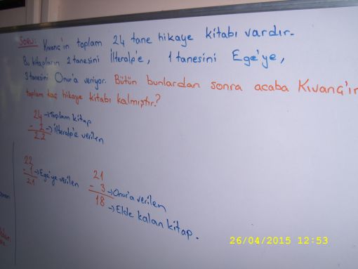SINIF ÇALIŞMALARIMIZ... TAHTAYA YAZDIĞIMIZ İKİ ADET PROBLEMİN ÇÖZÜMÜNE YÖNELİK ÇALIŞMALARLA BAŞLADI GÜNÜMÜZ. ÇÖZÜM YOLLARINI GÖSTERDİK TAHTADA, BİRLİKTE YAPARAK. ARDINDAN BİR SINIF UYGULAMASI YAPTIK, BENZER AMA DAHA HAFİF VE KOLAY SORULARDAN OLUŞAN. ( SINAV DİYE BİRAZ KORKTULAR AMA ) DAHA SONRA ZAMANIMIZI, HALK OYUNLARI ÇALIŞMAMSINA AYIRDIK. BİRLİKTE VE KIZ - ERKEK AYRI AYRI YÜRÜTÜLDÜ ÇALIŞMALAR. ![]() ![]() ![]() ![]() |