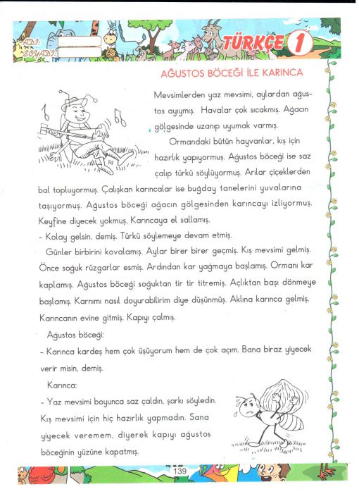 SINIF ÇALIŞMALARIMIZ ![]() Sınıf yerleşimi ve okulda sınıfımızın yeri konuları üzerinde de duruldu. Matematik dersinden de eldeli toplamalrı anımsadık. yazı tahtamızda bununla ilgili örnekler yaparak unuttuklarımızı anımsamaya çalıştık. Bununla ilgili çalışma kağıdı üzerinden bir etkinlik yürüttük. Daha sonra da benzer bir çalışma kağıdı ile değerlendirme çalışması yaptık. Türkçe dersimiz kapsamında ise " Ağustos böceği ile karınca " hikayesini okuyarak sorularını yanıtladık. ![]() ![]() ![]() ![]() |