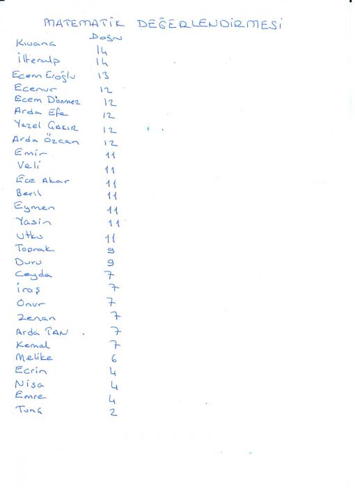 MATEMATİK DEĞERLENDİRME ÇALIŞMAMIZ... DEĞERLENDİRMEDE 15 SORU YÇNELTİLMİŞTİR. 1. Sorunun çiziminden kaynaklı küçük bir hata görülebilir. 2 - 9. soru çizim ve yerleştimeden kaynaklı az da olsa hatalı yerleştirilmiştir. Karştırmak mümkün olablir. 3 - 7. soru ve 14. soru zorluk düzeyi yüksek sorulardır. Tarafınızdan yapılacak değerlendirmeler buna göre yapılmalıdır. 7 ve üzeri doğrular başarılı olarak kabul edilecektir. ![]() ![]() ![]() ![]() |