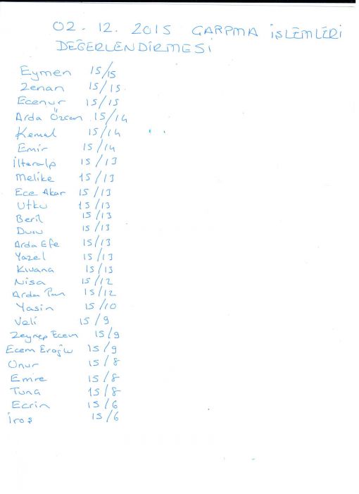 ÇARPMA İŞLEMİNE AİT KÜÇÜK BİR DEĞERLENDİRME ÇALIŞMASI YAPTIK. ![]() SEVİYE ÜZERİNDE YA DA BİRAZ DÜŞÜNMEYE YÖNELİK OLARAK İKİ SORU VARDI, DEĞERLENDİRMEDE. 6. SORU VE 11. SORU BİR PARÇADA OLSA DİĞERLERİNE ORANLA GÜÇLÜK DÜZEYİ YUKARIDA OLAN SORULARDI. DEĞERLENDİRME KAĞITLARI ÖĞRENCİLERE VERİLMİŞTİR. AKADEMİK BAŞARI ÇİZGİSİ, 8 DOĞRU VE ÜZERİ OLARAK KABUL EDİLMESİNE RAĞMEN BENİM İÇİN 10 VE ALTINDAKİ SONUÇLAR BAŞARILI OLARAK DEĞERLENDİRİLMEMEKTEDİR. ![]() ![]() ![]() |