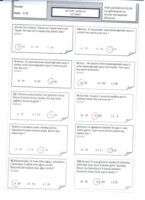 MATEMATİK DEĞERLENDİRME ÇALIŞMAMIZ...