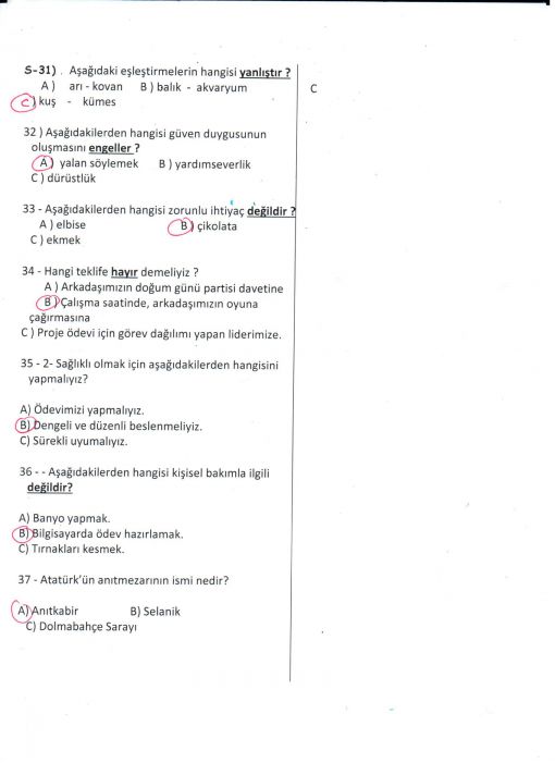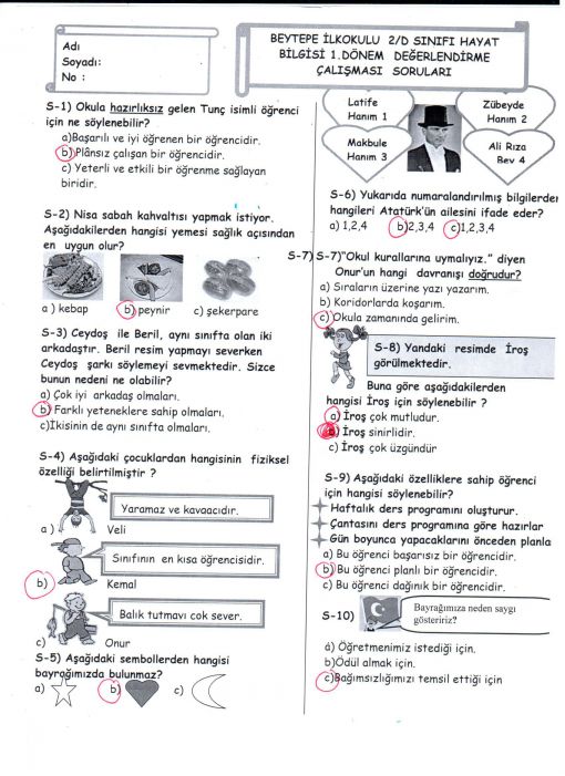 HAYAT BİLGİSİ DEĞERLENDİRME ÇALIŞMAMIZ... ( SORULAR )