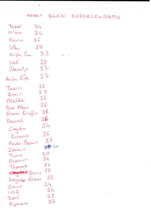 HAYAT BİLGİSİ DEĞERLENDİRME ÇALIŞMAMIZ...( SONUÇLAR)