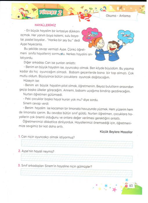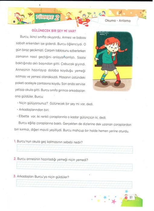 SINIF ÇALIŞMALARIMIZ ![]() Hayat Bilgisi kitabımızdan ilgili sayfaları okuyarak ve bı okumaları değerlendirerek başladık güne. Türkçe dersimizde okuma anlama, noktalama işaretlerinin olduğu bir çalışma kağıdı ile yürüttük çalışmamızı. Hatasız ve başarılı bir çalışma oldu, sınıf genelinde. Matematik dersimizde ise iki basamaklı bir sayı ile tek basamaklı bir sayının çarpım işlemini tahtada beşli gurplar halinde tamamladık. 8 6 9 7 4 3 x_________ x_______ gibi. Daha sonra ise zirveye tırmanmayı denedik ve hamd olsun ki çok başarılı sonuçlae elde ettik. Dört adet zorluk düzeyi tavan olan soru yazdım tahtaya ve çözümlemeye başladılar. Üç tanesini başarı ile tamamldılar. Ekte bilginize sunacağım. Devam ettik daha sonra bu tür sorulara... İçerisinde çarpma + toplama + çıkarma işemleri vardı. ![]() ![]() ![]() ![]() ![]() ![]() ![]() ![]() |