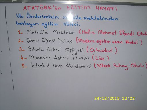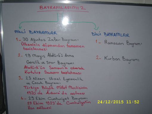 SINIF ÇALIŞMALARIMIZ ![]() " Atatürk'ün eğitim yaşamı" başlıklı konumuzda hjarp okuluna değin devam ettiği okulları gördük. Bir diğer konu başlığı ise; " Dini ve Milli bayramlar" dı. İkiye bölerek ayrı ayrı açıklandıı tarafımızdan bu bayramlar. Milli bayramlar konusuna girince de her zaman ki gibi kendimizi durduramadı. ve 1 9 mayıs 1919 da Atatürk'ün Samsun'a çıkışından başladık, Cumhuriyetin ilanına dek geldik. ![]() ![]() |
