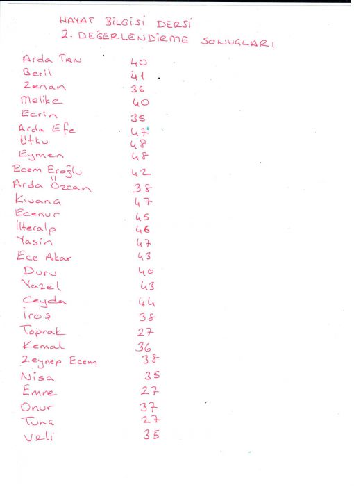 DEĞERLENDİRME ÇALIŞMAMIZIN SONUÇLARI... ![]() Bu açıdan değerlendirmeler 49 soru üzerinden yapılmıştır. Bir parça düşük gibi algılanan sonuçlar ( 35 - 38 gibi ) çocuklarımın hastalıktan yeni çıkmış olmalarından dolayı anlayışla karşılanmalıdır. Toprak - Tunç ve Emre için ise bu bağlamda özel bir çalışma yürütülecektir. Bir yanlış yapmış gözüken iki öğrencim ve benzer soruda yanlış yapan diğer öğrencilerim için de ayrı bir parantez açmak gerekir : Eymen ve Utku'nun her ikisi debirer yanlış yaptığı,( buna benzer daha bir kaç öğrenciminde aynı soruda yanlışı var ) " Atatürk'ün gittiği ilk ilkokul " sorusuydu. Aslına bakmak gerekirse bu soruya verilen yanıt ; " Şemsi Efendi İlkokulu" cevabı da doğru kabul edilebilir bir mantıktadır. Zira ilk gidilen okul olan Mahalle Mektebi okul mantığında olmadığından ve çok kısa süreli olduğundan ve de benim Aslan Parçalrım çok daha kompleks düşündükleri için bu soruya istenirse ( + ) puan da verilebilinir. Aslan Parçalarımın her birini sevgi ile kucaklıyorum. Çok daha iyi günleri birlikte karşılamak temennisi ile siz anne ve babaları da gönülden kutluyorum. ![]() Sonuçları ekte sunuyorum. |