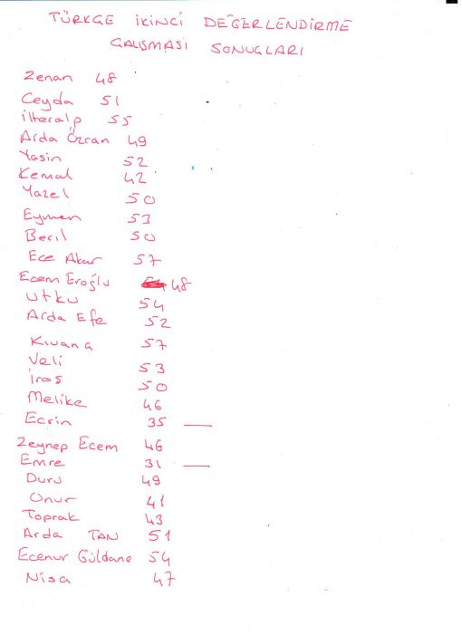 TÜRKÇE DEĞERLENDİRME SONUÇLARIMIZ...