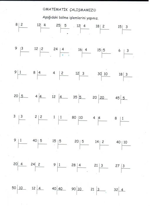 BÖLME KONUSUNU İÇEREN İKİ ADET ÇALIŞMA KAĞIDI VERDİK BUGÜN.