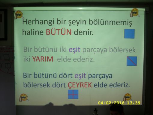 SINIF ÇALIŞMALARIMIZ ![]() Yaşamımızı kolaylaştıran teknolojik aletlerden, cihazlardan söz ettik. Tasarrufun öneminden bahsettik. gereksiz yere para harcamının yanlış olduğunun altını çizdik. Ardından ise matemetik konularına başladık. Geçen yıl öğrendiğimiz " tam - yarım - çeyrek konularını görmeye başaladık yeniden. Yavaş yavaş kesir kavramı ile tanışamaya ilk adımlarımızı attık bu yıl. Geçen yıldan bildikleri için başlangıç kısmında çok da zorlanmadık. Bunun üzerine koymaya devam edeceğiz. Yazı tahtasında şekiller çizerek anlattık önce. Bazı açıklayıcı kavramlar, tanımlar yazdık. Açıklamalar yaptık. Daha sonra ise bir kez de yansı üzerinde bir sunu ile tekrar ettik, konumuzu. İki adet çalışma kağıdı ile de kolaydan zora doğru yol aldık. ![]() ![]() ![]() ![]() ![]() ![]() ![]() |