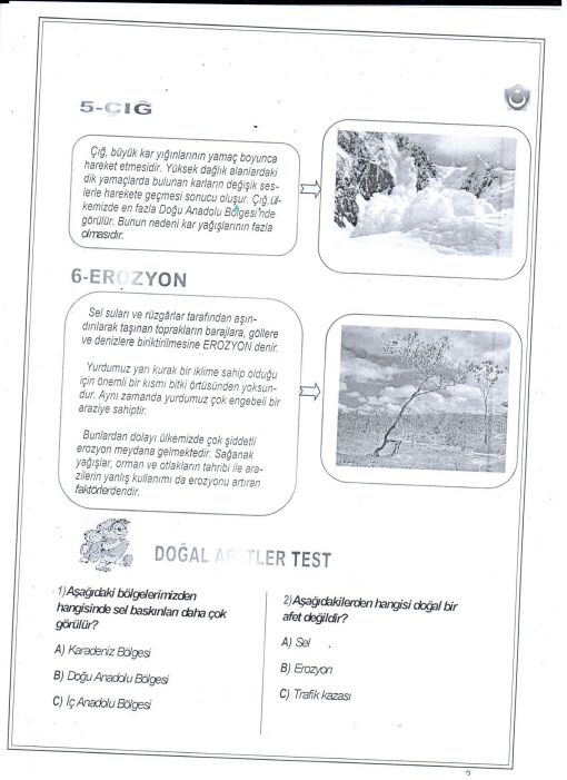 " Doğal Afetler " konu başlığı altında işlediklerimizin tekrarı niteliğindedir, ev etkinliklerimiz.