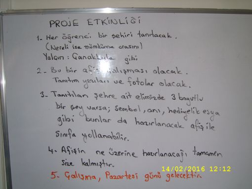 YENİ BİR PROJE ETKİNLİĞİMİZ DAHA OLACAK ! ![]() Etkinliğimiz şöyleydi : Herkes bir tanıtım afişi yapacaktı. Mümkün ise memleketlerini olmaz ise bir başka şehri tanıtan bir afiş çalışması yapılacaktı. Bu afişlerimizde elbette tanıtım yazıları olacak ve görsellerle süslenecekti. Hatta var ise hediyelikve benzeri anı parçacıkalrı da kullanılabilecek bu tanıtım etkinliğinde. Bu etkinliğimizin teslimini, bir sonraki hafta başına öteledik. ![]() |