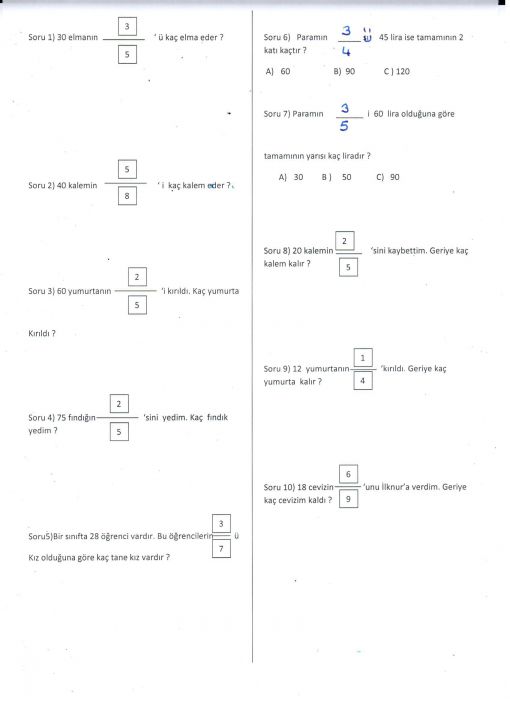 Bir süredir yürüttüğümüz kesirler konusuna bugün de tam gaz yaptık. Mükemmellik çizgisine eriştik desem yanlış olma zsanırım.