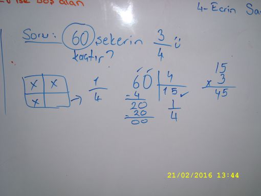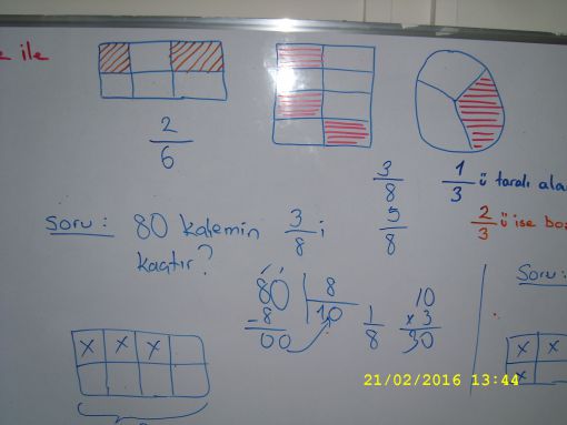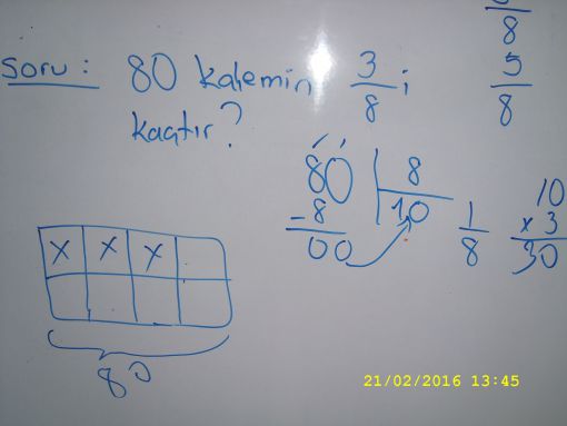 SINIF ÇALIŞMALARI ÖRNEKLERİ... Bugün ev etkinliği olarak da verilen çalışmaların benzerleri gün içerisinde oldukça yoğun bir şekilde çok sayıda örneklerle tahtada çözülmüştür. 80 liranın 3 ____ ü kaçliradır ? sorusunun çözümü : 4 Verilen rakam ( Burada 80 2 dir ) paydaya yani burada dörde ( 4 ) bölünür. Sonuçta elde edilen 1 ___ 4 oranıdır. Yani 20 rakamını bulusunuz. Çıkan sonucu da Pay ile, burada ( 3 tür ) çarpılır. Sonuç : 60 olarak bulunur. ![]() ![]() ![]() ![]() ![]() |
