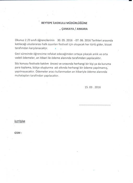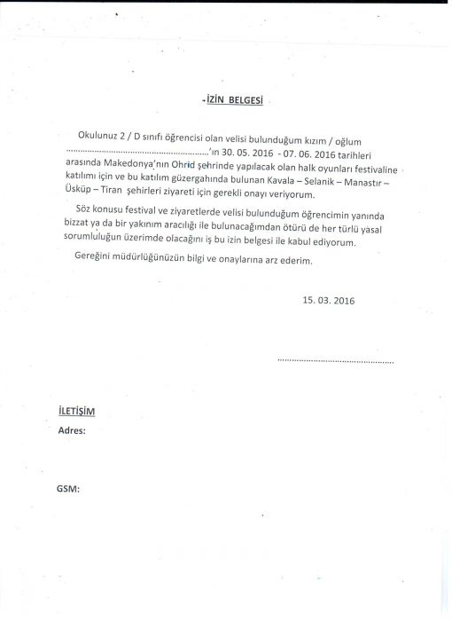 İZİN BELGESİ TALEBİ... ![]() Yine dün duyurduğum üzere belgelrde yazanları yorumlamaya, satır araalrını okuyup başka başka anlamlar yüklemeye çalışmayın. Bu belgeler tamamen istenilen prosedüre uygun olduğu için böyle yazılmıştır. Anımsayacağınız gibi Okul müdürülüğünün izin onayı için haklı gerekçeleri bulunmaktaydı. Bu gerekçeleri gerçekleştirmek, olabildiğince yasal prosedürüne uydurmak adına bu tür belgelere gerek olmuştur. Herhangi bir tereddütü olan benimle paylaşabilir. Bu saatten sonra gezinin herhangi bir boyutu hakkında çatlak ses çıkmasına tahammülüm olmayacağını da peşin peşin belirtmek isterim. ![]() ![]() |