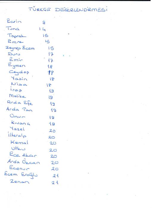 TÜRKÇE DEĞERLENDİRME SONUÇLARIMIZ...