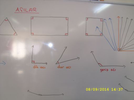 SINIF ÇALIŞMALARIMIZ... Neredeyse tam gün matematikle güreş tuttuk desem yanlış olmaz sanırım. Doğru konusunun tekrarı ile başlandı güne. Bununla ilgili sınıf çalışmaları yürüttük. hemen ardından " Nokta ve nokta birleştirme konusunu anımsadık. " Birim" kavramı üzerinde durduk. ne olduğunu anlattık. İki nokta arasında oluşan kısmı sayarken bir birim olarak saymamız gerektiğini söyledik. Üçgenlere yüzeysel bir şekilde giriş yaptık. Ayrıntılara daha sonraları gireceğiz. Bir sonraki adımımız ise asıl varmak istediğimiz " Açılar " konusuydu. Çok sıkı bir giriş yaptık. Uzunca bir süre de üzerinde duracağız. Her gün üzerine koyarak ilerleyeceğiz.Bu bakımdan devamlılık son derece önemlidir. Eksik kalan kısmı tamamlamak çok zor olacaktır. "İki doğru parçasının, iki ışının birleştiği, kesiştiği noktaya açı denir " tanımı ile başladık. Tahtaya çizimler yaptık. Açıların nasıl oluştuğunu anlattık. Örnekler verdik. " Dar açı, dik açı, geniş açı" kavramlarını verdik. Yarına ait çalışma programımızda da yine bu konuya ağırlık vereceğiz. Detaylandırarak anlatmaya devam edeceğiz. "Tam açı, doğru açı " kavramlarını öğreteceğiz. ![]() ![]() ![]() ![]() ![]() ![]() ![]() ![]() ![]() ![]() ![]() ![]() ![]() |