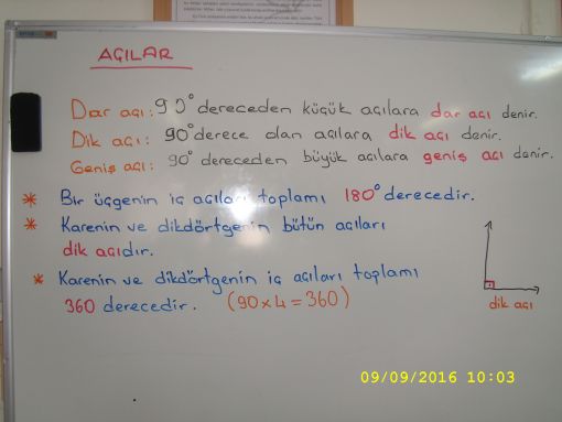 SINIF ÇALIŞMALARIMIZ... ![]() Sihirli sözcüklerden söz ettik. Yaşamımızda bunlara sık sık yer vermemiz gerektiğini ifade ettik. Bunlardan 3 ( üç ) tanesini ben tahtada paylaştım. Çocuklarımdan da tamalamalarını istedim. Her biri benim yazdığıma ek olarak 5 adet yeni sihirli sözcük yazacak. Bir sonraki dersten başlamak üzere ise matematik dersine olabildiğince yoğun bir şekilde devam ettik dünün ardından. " Açılar " konu başlığı altında bugün de dev adımlar atmaya devam ettik. Konunun bir kısmına ait video görüntüsüne facebook sayfamızdan ulaşabilirsiniz. ![]() ![]() |
