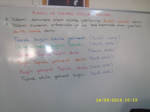 SINIF ÇALIŞMALARIMIZ... ![]() " Hareket " konu başlığı altında hızlanma - yavaşlama - dönme - yön değiştirme - sallanma konularını tekrar ettik. Kitabızdan ilgili alanları okuduk ve uyguladık. Bir sonraki adımımız ise günün en ağırlıklı konu başlığı olan Türkçe idi. Toplam üç ( 3 ) adet çalışma kağıdı ile sınıf çalışması yürüttük. Önce alfabetik sıralama ile başldık. Hece çalışması ile devam ettik. İkinci kısımı ise " Cümle yapaıları " oluşturdu. Kurallı ve devrik cümle yapılarını gördük yeniden. Bu konuya geçen yıl bol miktarda değinmiştik. Bu yıl da bir süre üzerinde dyrmaya devam edeceğiz. Yazı tahtamızda konunun örneklerle anlatımını yaptık. Çocuklarım tahtaya yazılanı defterlerine örneklerle birlikte geçirdiler. ![]() ![]() ![]() ![]() ![]() ![]() ![]() ![]() ![]() |
