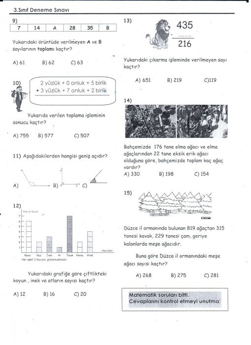 MATEMATİK DEĞERLENDİRME ÇALIŞMAMIZ...