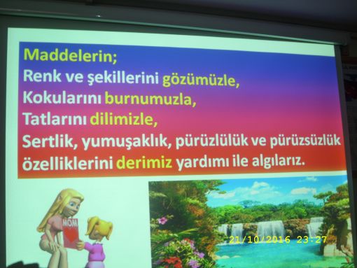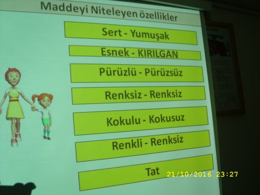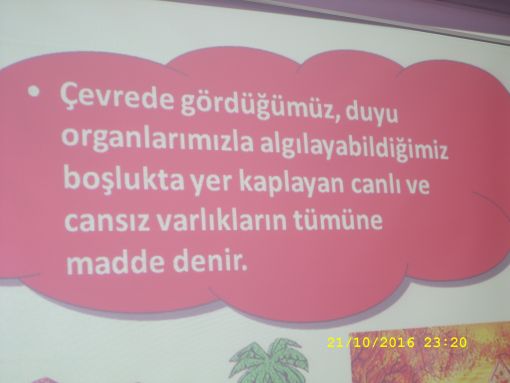 SINIF ÇALIŞMALARIMIZ... ![]() Bu yıl ise fen bilgisi dersimiz kapsamında " kuvvet - hareket gibi önemli bir konunun ardından onun kadar önemli bir başka konuya başladık bugün. Uzun bir süre üzerinde duracağız bu konunun. "Maddeyi niteleyen özellikleri " konunun başlığı. Maddeleri birbirinden ayıran özelliklerinden ve bunları nasıl ayırabileceğimizden söz ettik. Sert - yumaşak Esnek - kırılabilir Pürüzlü - pürüzsüz Renkli - renksiz Kokulu - kokusuz gibi. Yansı üzerinden konuyu bir kez de sunum olarak izledik. Ardından da bir çalışma kağıdı ile konunun pekişmesine uğraştık. Bununla da yetinmedik, okulumuza bu yıl yeni açılan fen bilgisi labaratuarımıza giderek orada görevli olan öğretmenimizin de desteği ile anlattığımız konunun deneyini yaptık. Bu maddeleri orada görüp farkettik. Türkçe dersimizde de yeni bir konuya başladık : " Türemiş Kelimeler " Bunun ile ilgili örnekler hazırladık tahtada. Çocuklarım defterlerine aldılar bu notları. konunun tanıtımından ve örneklerden sonra da çalışma kağıdı ile günü tamamladık. ![]() ![]() ![]() ![]() ![]() ![]() ![]() ![]() ![]() ![]() ![]() ![]() ![]() ![]() ![]() ![]() ![]() ![]() ![]() ![]() ![]() ![]() ![]() ![]() ![]() ![]() ![]() |
