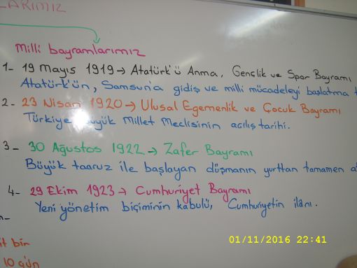 SINIF ÇALIŞMALARIMIZ... ![]() Bir sonraki adımımız ise " Atatürk'ün Eğitim hayatı " oldu. Çok kez anlattığımız, sorular sorduğumuz konu başlığının bir kez daha ilgili konu nedeniyle üzerinden geçtik. Bunun dışında ise tam gün matematik yapıldı. Konu başlığımız ise " Toplama işlemi " oldu. Basitten zora doğu akan örnekler ile toplama işlemi anlattık. Önce tek basamaklı ardından iki basmaklı ve üç basmaklı işlemler yer aldı çalışmamızda. Eldeli toplamalrı da anımsadık. Yazı tahtasında örnekler verdik, örnekleri defterimize aldık. konu ile ilintili olarak iki tane de sınıf çalışması ile uygulama yaptık. Ev etkinliğimizi de buradan verdik. Bir süredir ısrarla üzerinde durduğum çarpım tablosunun kontrolünü de yapma fırsartı bulduk. Ne yazık ki çok da memnun kaldığımı söyleyemeyeceğim. Elbette çok iyi ezberleyen çocuklarımın olduğunu görmek, buna tanık olmak sevindirdi ama takılanların sayısı da az değildi. Bu konunun kapanması gerektiğini , bitmesi gerektiğini defalarca söylememe, bu iş bitsin diye bir süredir ev etkinliğine dahi çok fazla vermememe rağmen halâ sorun yaşamamızı anlamakta zorluk çekiyorum. Bu kontrole ilişkin kayıt facebook sayfamızda mevcuttur. ![]() ![]() ![]() ![]() ![]() ![]() ![]() ![]() ![]() ![]() ![]() ![]() ![]() ![]() |