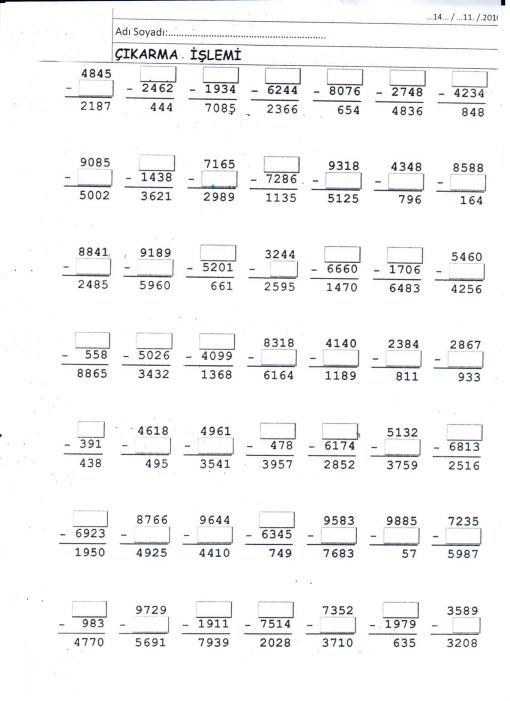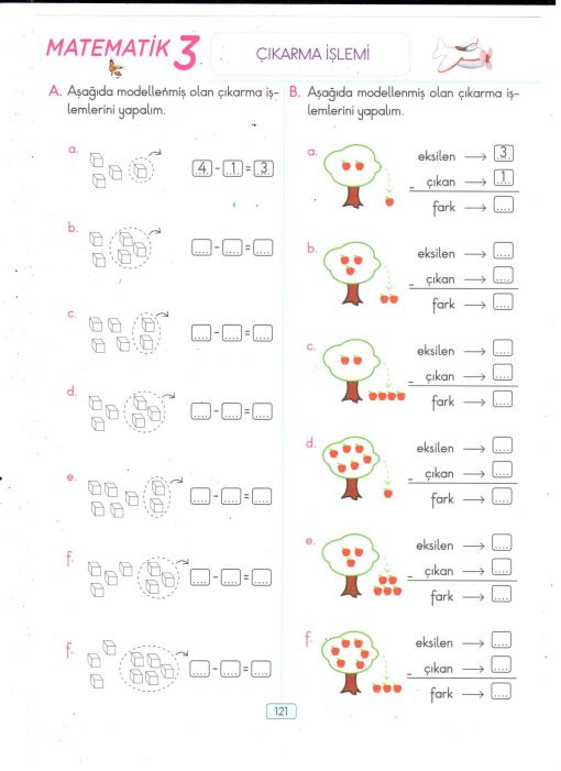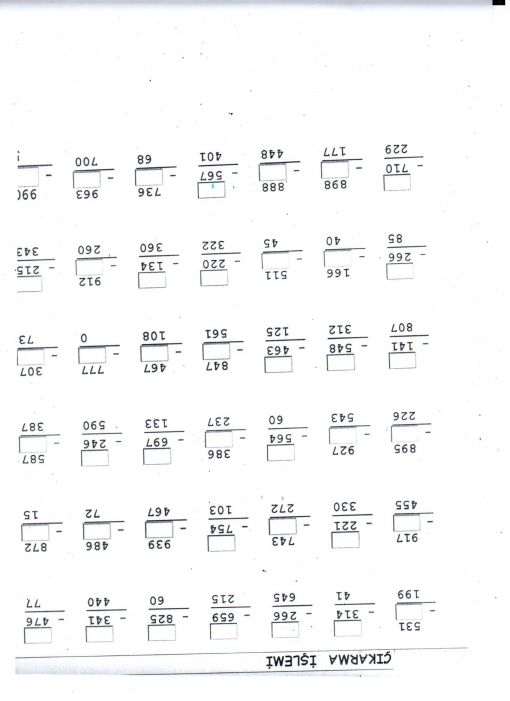 Sonuncu ise çıkarma işleminin temel mantığını ortaya koyan bir çalışma kağıdır.