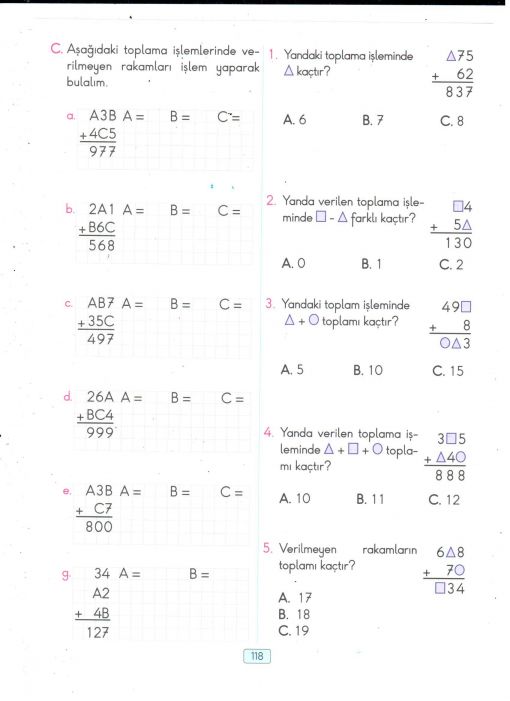 Bir tanesi toplama işleminde verilmeyeni bulma, diğeri ise onluk bozarak çıkarma işlemine aittir.