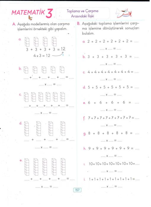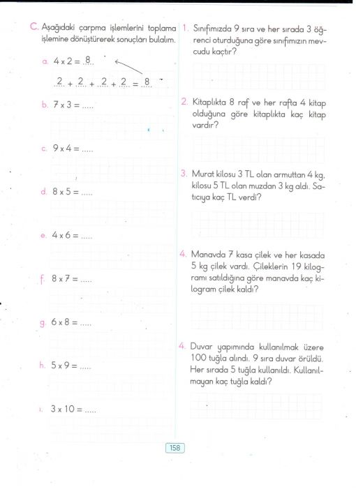 Bir diğeri ise toplama ve çarpma işlemleri arasındaki bağlantıyı açıklayan işlem kağıdıdır.