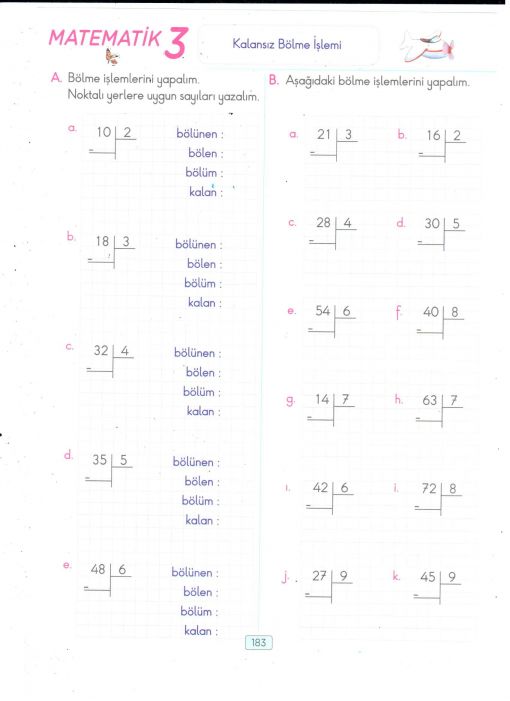 Bir tanesi bugün tekrarına başladığımız, yarın da devam edeceğimiz bölme işlemine aittir.