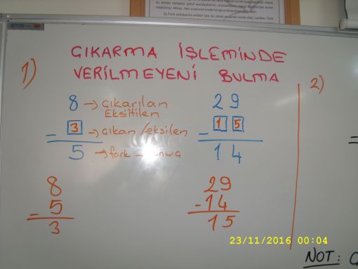 SINIF ÇALIŞMALARIMIZ... ![]() Böylelikle birinci kitabımızı tamamlamış olduk. Yarından itibaren ikinci kitabımızla çalışmaya başlıyoruz. Bundan sonraki adımımız büyük bir adım oldu ve gün boyu bu dersimiz ile meşgul olduk. Konumuz ise, " çıkarma işleminde verilmeye değeri bulmaydı. Geçen yıl da bu yıl da üzerinde durduğumuz konu başlığının bir kez daha üzerinden geçmeyi uygun buldum. Bu yıla ait programımız içerisinde de bulunması da çalışmamızı kolaylaştırdı. Yazı tahtamızda olabildiğince ayrıntılı olarak bir kez daha anlattık konumuzu. Çocuklarım da defterlerine aldılar yazılanları. Bu konu başlığımızla doğru orantılı olarak da küçük guruplar halinde sınıf çalışmaları yürüttük. Üç ayrı çalışma kağıdı tamamladık. Biz birer gurupla çalışırken diğer gurup müzik dersi ile meşguldü. ![]() ![]() ![]() ![]() ![]() ![]() ![]() ![]() ![]() |