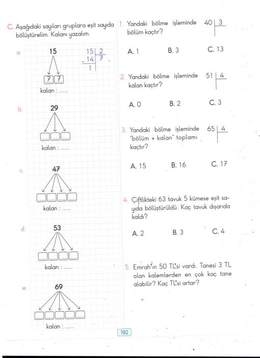 Ev etkinliğimiz bu gün tekrarını yapmaya başladığımız bölme işleminden verilmiştir. Özellikle de bugün öğrendiğimiz kalanlı bölme ana konumuzdur.
