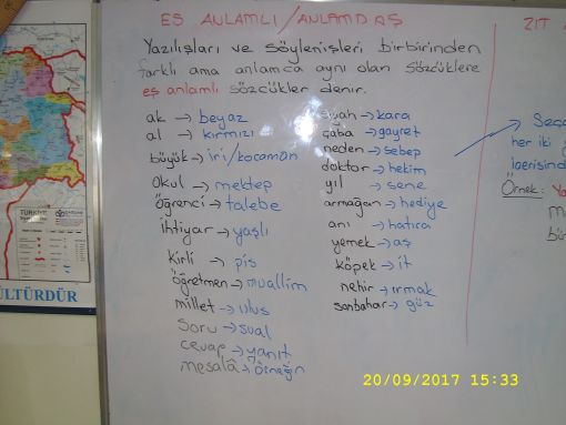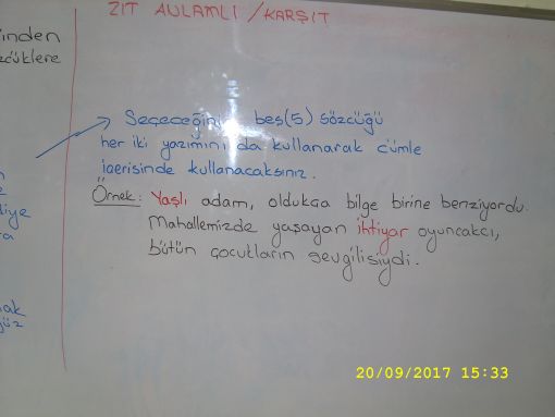 EV ETKİNLİĞİMİZ... ![]() Her öğrenci yazı tahtamıza yazdığımız örneklerden ya da kendi bulacakları benzer örneklerden beşer adet örnek cümle yazacaklar. Belirlenen sözcüğü her iki anlamdaş sözcük ile birlikte kullanacaklar. ![]() ![]() |