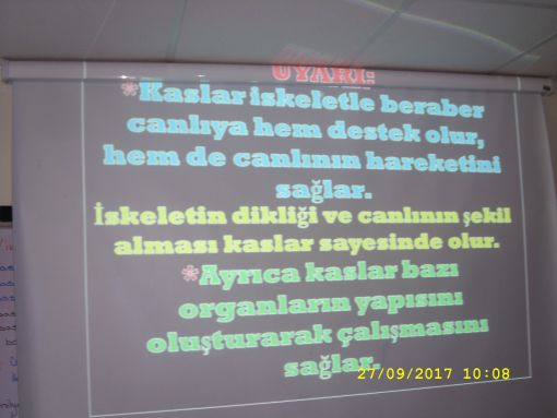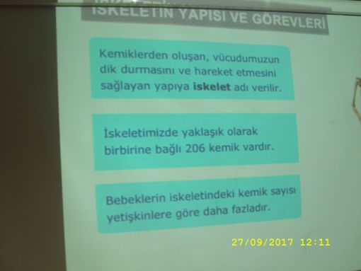 SINIF ÇALIŞMALARI ![]() Dördüncü sınıf fen bilgisi konularına böylelikle geçiş yapmış olduk. Budenli fazla zaman ayırmamızın nedeni ise konu bütünlüğünün bozulmaması içindir. Konuya önce kas sistemi, kas çeşitleri, kasların görevleri ile girdik. Konunun tarafımdan aktarılmasının ardından yansı üzerinden bir kez de slaytlar ile konuyu gördük. Yansıdaki slaytlat üzerinde ayrıntıılı olarak irdelik konuyu. Hemen ardından bu kez iskelet sistemin geçiş yaptık. Bunu da benzer şekilde irdelik. Buradaki tek fark, ortaokuldan temin etttiğimiz üç boyutlu iskelet modeli üzerinden de konuyu tekrarlamamız oldu. Kemik yapılarımız ile gerekli bilgileri üzerine basa basa verdiğimizi düşünüyorum. Bu konumuza ilişkin görüntülere de ulaşabilirsiniz. ![]() ![]() ![]() ![]() ![]() ![]() ![]() ![]() ![]() ![]() ![]() ![]() ![]() ![]() ![]() ![]() ![]() ![]() ![]() ![]() ![]() ![]() ![]() ![]() ![]() |