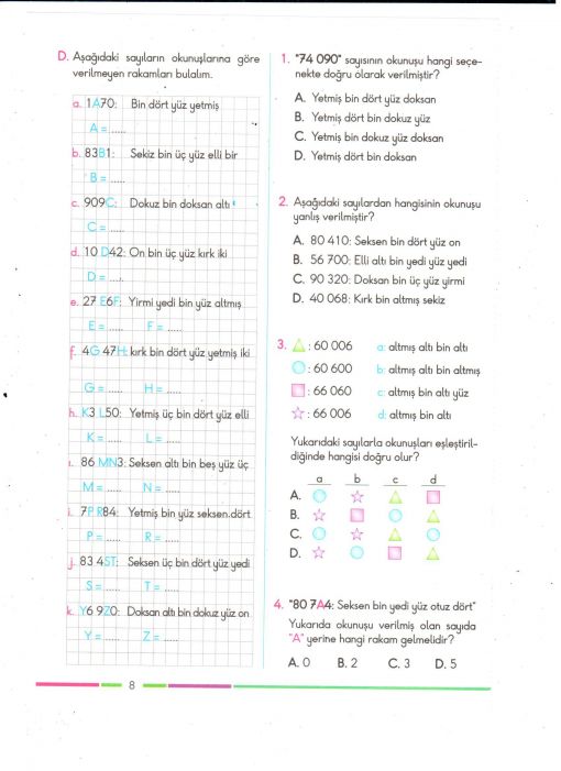 SINIF ÇALIŞMALARIMIZ... ![]() Sayıları bu kez öyle küçük tutmadık, milyarlara kadar çıktık. Bununla yetinmedik, kafaları karıştırma adına içerisinde bol sıfır olan sayıların okunmasına yöneldik. Bu sayı okumalar ile ilgili bir de sınıf çalaışması yaptık. Türkçe dersimiz de yine geçen hafta daüzerinde durduğumuz " eş anlamlı - zıt anlamlı söcükler " uygulamsı vardı. Bununla ilgili iyi bir sınıf çalışması yürüttük. Hemen ardından mini bit test dahi yaptık. Öğleden sonraya kalan zaman dliminde de fen bilgisinde geçenhafta öğrendiğimiz konulara ait bazı bilgileridefterlerimize not aldık. ![]() ![]() ![]() ![]() ![]() ![]() ![]() ![]() ![]() |