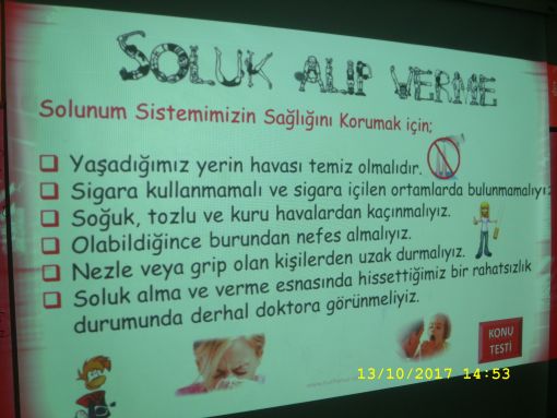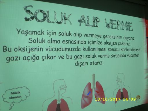 SINIF ÇALIŞMALARIMIZ... ![]() İkinci ders saatinde sosyal bilgiler dersimizde, ilgili kısımların okunması ile dersi tamamladık. Üçüncü ve dördüncü ders saatlerimiz ise bilindiği üzere ingilizceydi. Öğleden sonra ise dün labaratuarda girişini yaptığımız yeni bir konuya geçiş yaptık. " Solunum " Öğleden sonraya ait zamanımızı bu dersimiz doldurdu. ![]() ![]() ![]() ![]() ![]() ![]() ![]() ![]() ![]() ![]() ![]() ![]() ![]() |
