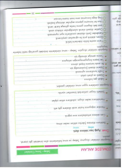 SINIF ÇALIŞMALARIMIZ... ![]() Aynı cümle içerisinde anlamca birbirininin aynı ya da benzer iolan sözcüklerin yarattığı anlam bozukluklarını konuştuk. Dağıttığımız bir çalışma kağıdı üzerinden uygulamalıolarak yaptık çalışmamızı. Bukonu başlığı üniversite sınavına dek karşımıza çıkacak konu başlıkları arasında yer almaktadır. Anlaşılması, kavranması önemlidir. Yine çok önemli bir diğer konu başlığınıise; " Neden / sebep - sonuç " cümleleri oluşturdu. Bu çalışmamızıda yinebir uygulama çalışmasıile yürüttük. Karşımıza çıkabilecek olsı durumları ve çözümlerini konuştuk. Üçüncü ve dördüncü ders saatlerimiz matematik idi. " Grafik oluşturma ve okuma" başlığımız vardı. Veri oluşturma, çetele tablosu, sıklık tablosu oluşturma, sütun grafiği yapmayı gördük. Yazı tahtamızda bir örneklem ile sırasıyla bütün çizelge ve grafiklerin çizimini, oluşumunu anlattık. Daha sonra ise üç adet çalışma kağıdı ile pekiştirme çalışması yaptık. Öğleden sonraki dersimiz ise, sosyal bilgilerdi. Kaldığımız yerden milli mücadele serüvenine devam ettik. Önce konuyu tekrar ettik. Soruları yanıtladık. Bununla da yetinmeyerek yazı tahtamızda süreci başından sonuna del tüm ayrıntısı ile yazarak anlattık bir kez daha. Her ne kadar çocuklarım sızlansa ve memnun olmasa da ve de bir çoğu tamamlayamasa dahi ben üsreci bütünüyle aktardım. ![]() ![]() ![]() ![]() ![]() ![]() ![]() ![]() ![]() ![]() ![]() ![]() ![]() ![]() ![]() ![]() ![]() ![]() ![]() ![]() ![]() ![]() ![]() ![]() ![]() ![]() ![]() ![]() ![]() ![]() ![]() |