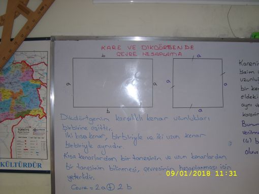 Karenin ve dikdörtgenin çevre hesaplamaları ve verilen çevreden kenar bulma konularına değindik