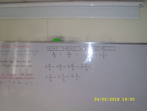 SINIF ÇALIŞMALARIMIZ... ![]() Bu konuya malzema olması açısından iki ayrı sınıf çalışması yaptık. Birinci çalışmayı birlikte yürüttük, cevaplamalarını hep birlikte yaptık. İkinci çalışmamız ise küçük bir değerlendirme çalışması idi. Verilen süre içinde ( 15 dakika ) 19 sorunun cevaplandırılmasına ilşkindi. Üç öğrenci verilen zaman diliminde tamamlamakta zorlansa da genel süreye uydu. Matematik kısmında ise bir sınıf çalışması ile başladık derse. Basit ve tam sayılı kesirlerin ondalık sayı, ondalık kesir olarak gösterilmesine yönelikti bu çalışma. Bir adım sonrasında yeni bir konuya başladık: " Kesirlerde toplama işlemi. " Sistemini anlattık, tahtaya notlaryazıp çocuklarımın almalarını sağladık. Ardından da örneklerle konuyu irdelemeye başladık. Çok fazla bir zaman uğraşmasak da amaçlanan ulaşıldı, konu tam olarak anlaşıldı kanısındayım. Öğleden sonra ise yarın yapılacak olan futsal turnuvası için ön hazırlık çalışması yapılması için dışarı çıkıldı. ![]() ![]() ![]() ![]() |