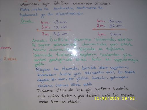 SINIF ÇALIŞMALARIMIZ... ![]() Zira ilk işimiz dünden dinlemediğimiz yazılı anlatımları dinlemek oldu. Çocuklarımdan dün bizzat benim dinleyemediklerimi dinledim önce. Ardından matematiğe geçiş yapıldı. Uzunluk ölçülerini anımsadık birlikte. Tahtamıza bilgi notları yazıp örnekler verdik. Bu konuda çalışmaya devam edeceğiz. Hem de uzunca bir süre. Öğleden sonraya aise sözlü anlatımları dinlemek kaldı. ![]() ![]() ![]() ![]() |