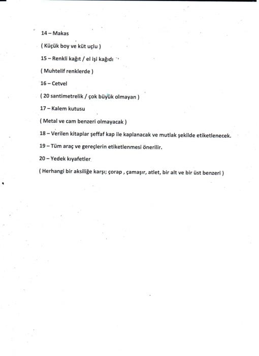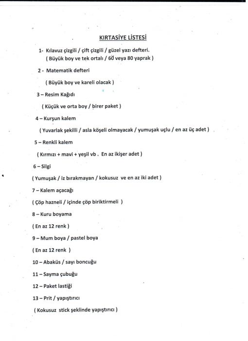 KIRTASİYE LİSTEMİZ HAZIRLANDI ...