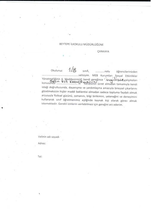 Ek derslerimiz için, dışarıdan dersimize giren öğrtmenlerin çalışmasına olanak sağlamak adına buformun da imzalanması ve bana döndürülmesi gerekmektedir.