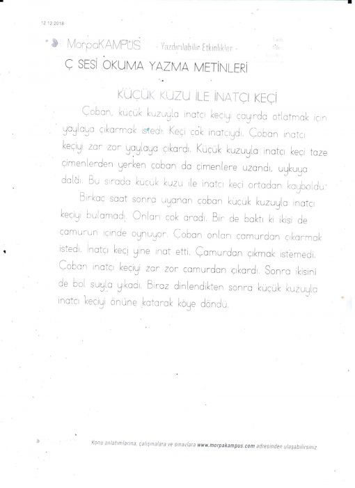 Bu çalışma kağıdımız, hem okunacak hem de yazılacak.