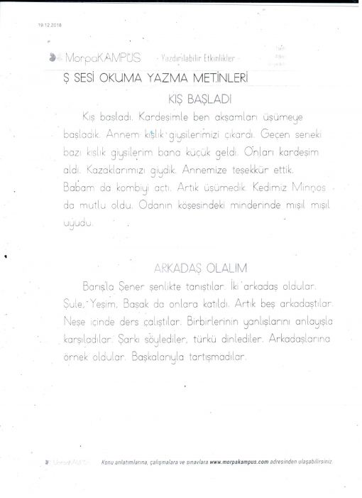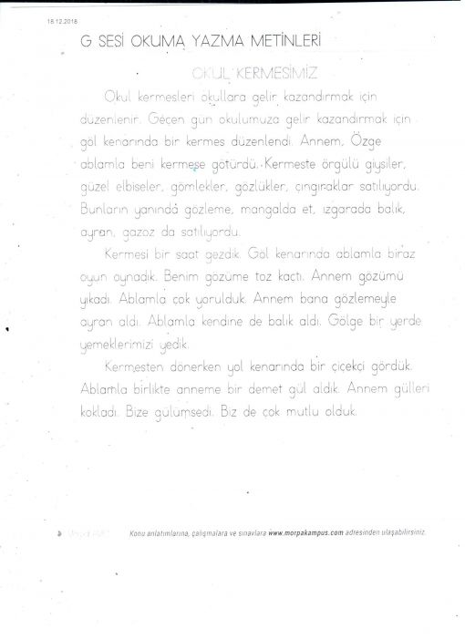 Diğer çalışma kağıdı ise her zamanki gibi hem okunacak hem de yazılacak.