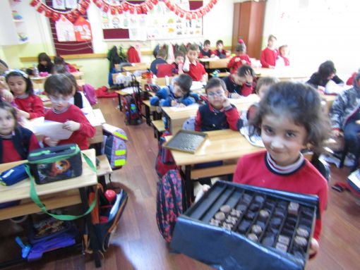 Elif İnci SAYGILI, ailesinin gönderdiği kurabiyeleri ve Ayşe CAMIŞCI ise çikolataları arkadaşlarına keyifle dağıttılar.