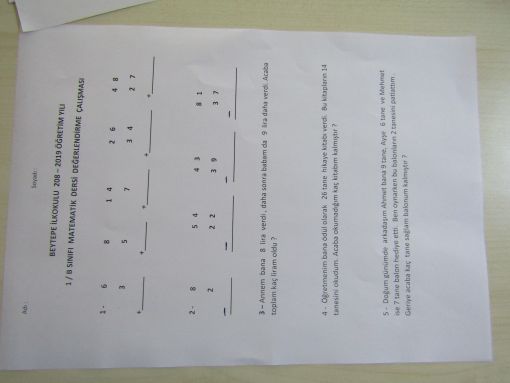Değerlendirme çalışmamız... ![]() Bunları sanırım hatasız ya da en az hata ile geçtik. Üç, dört ve beşinci soruların soru biçimi ile ilk kez karılaştı çocuklarım. İlgili olan velilerim bileceklerdir. Bir konuyu anlatmadan, o konu hakkında ayrıntılı bilgi vermeden önce bir çalışma ile , bir test ile yoklanır hedef kitle. Neyi ne kadar bildikleri sorgulanır. Buna akdemisyenler eğer yanlış yazmayacaksam, preetest diyorlar. Çalışmanın sonunda ise bu kez neyin ne kadar öğrenildiğini ortaya koyan protest diye ölçme amaçlı bir başka çalışma / test yapılır. Bizimki de bir nebze buna benzedi. Bu yönde hiç bir ön hazırlık yapmadan yoklamış olduk bu sorularla. Yanıtların neredeyse tamamına yakınında sadece sonuç var, işlem yok. Çocuklarım tam da beklediğim gibi zihinden yanıtlamışlar soruları. Kağıtlarda işlem yok, yani neyi nereden bulduklarını gösterir bir şey yok. Çalışma sonrası, nasıl yapmaları gerektiğini ayrıntılı bir şekilde tahtada anlattık. Yetinmedik , bir de dramatizasyon ile pekiştirmeye çalıştık; problem çözümlemeyi. ![]() |