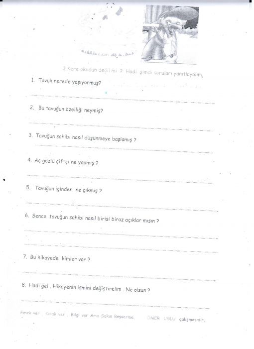 Ev etkinliğimiz... ![]() İstenilen , akıcı okuyuncaya dek okunması tabii öncelikle. Ardından , arka sayfada yer alan soruların yanıtlanması. İkinci ev etkinliğimiz ise bugün yaptığımız sınıf çalışmasının paralelinde bir çalışma. Sesli harf ile başlayan aynı zamanda kendi başına hece durumunda olan sesler ile başlayan isimler yazmak. Tabii bizim bulduklarımızın dışında bulmalılar. Sınıf çalışması adı altındaki paylaşımda örneğini görebilirsiniz. ![]() ![]() |